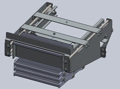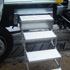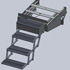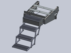 The proven and accepted method for a multi-tier folding step is a series of linked mechanical parallelograms, however only three tiered versions had yet proven successful. Therefore it was decided that the first three tiers from the ground up would be on a series of linked mechanical parallelograms mounted to a rolling chassis which had the fourth tier mounted to it and deployed from a second chassis mounted to the vehicle.